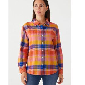 Soft Surroundings Shirt Womens Medium Multicolor Plaid Smocked Boho Top Cotton