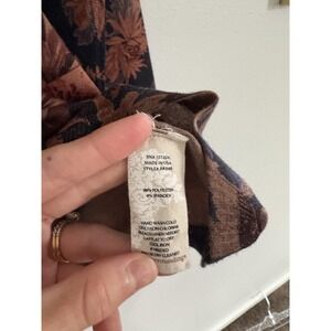 Color/Pattern: Navy base with multicolor floral/botanical print in rust, brown, and red tones