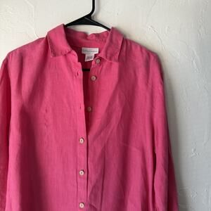 Soft Surroundings Shirt Womens Petite Small Pink Linen Button Up Long Sleeve USA