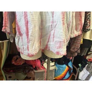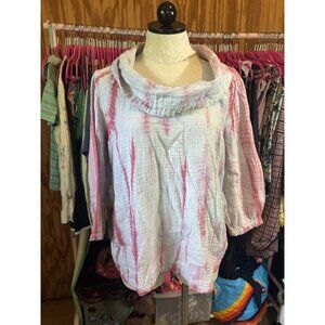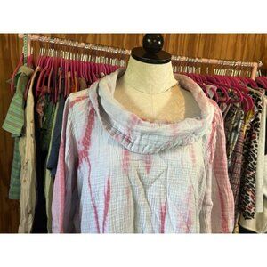 Soft Surroundings Sierra Gauze Pullover Sz L Tie Dye Cowl Neck 3/4 Sleeve Tunic
