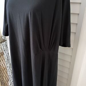 Soft Surroundings Signy Midi Dress Black Gathered Side 3/4 Sleeve Pima Cotton 2X