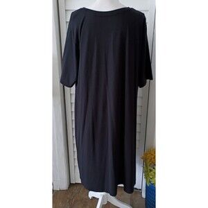 The Soft Surroundings Signy Midi Dress in Black is a stylish and comfortable option for plus-size women. Made from soft Pima cotton, this dress features 3/4 sleeves and a flattering gathered side. The solid black color and midi length make it a versatile piece for any wardrobe. Ideal for casual occasions or dressed up with accessories for a more formal look, this T-shirt dress is a must-have addition for any woman looking for a classic and easy-to-wear option. EUC no known defects.