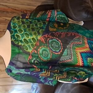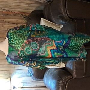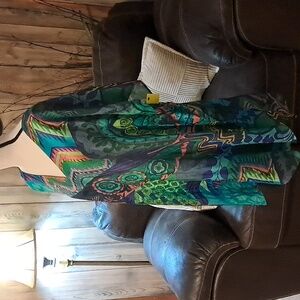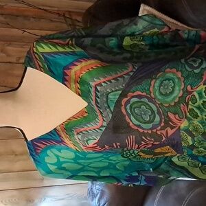 Soft Surroundings Silk Boho Multicolor Floral V-Neck Adelaide Caftan Size L/XL