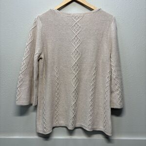 Soft Surroundings Silk Cashmere Blend Beige Pullover Knit Tunic Sweater Sz PM
