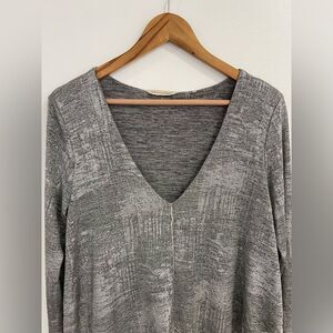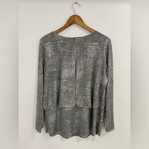 Soft Surroundings Silver Metallic Layered Long Sleeve Blouse. Size Medium