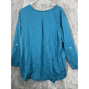 Soft Surroundings Size 1x Tencel Tunic Top V Neck Roll Tab Popover Boho Coastal