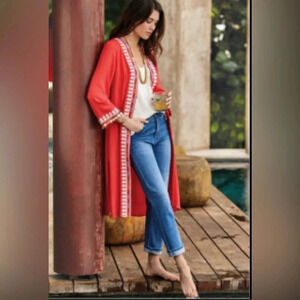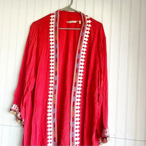 Soft Surroundings Size 2X Orange Hacienda Gauzy Beaded Kimono Topper Jacket