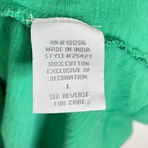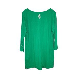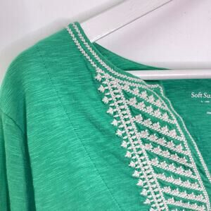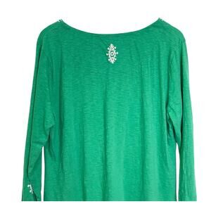 Soft Surroundings Size L Green 3/4 Sleeve Cotton Embroidered Boho Tunic Shirt