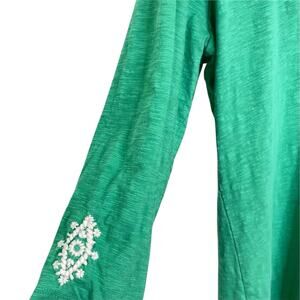 Soft Surroundings Green 3/4 Sleeve Cotton Embroidered Boho Tunic Shirt