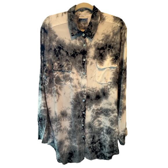 Soft Surroundings | Size L Long Sleeve Button Up Tie Dye Shirt Oyster Buttons