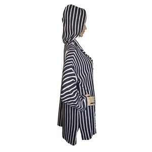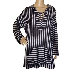 Soft Surroundings Size Large Offshore Hooded Tunic Cover Navy Blue White T45