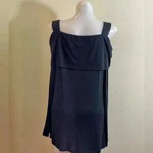 Soft Surroundings Size M BLACK Cold Shoulder Zip Front Top Tunic Blouse
