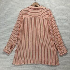 Soft Surroundings Size M Escambia Gauze Tunic Women's Coral Stripe Button Front