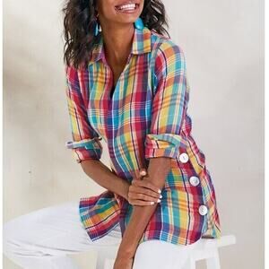 Soft Surroundings Size M Kona Shores Shirt Crinkle Plaid Multicolor