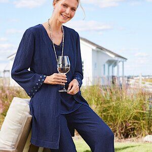 Soft Surroundings Size M Oceo Gauze Tank and Topper Set in Navy Blue NEW!