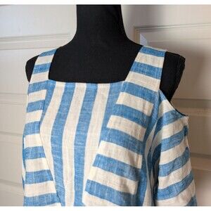 The Soft Surroundings Tunic Blouse is a stylish and versatile piece perfect for various occasions, including travel, parties, casual outings, and workwear. Made from a comfortable linen blend with a touch of rayon, this blouse features a square neckline, zipper closure, and trendy accents like a zipper detail and cold shoulder design. The multicolored striped pattern adds a coastal and nautical touch, while the breathable material and pockets make it practical for the warmer seasons of summer, fall, and spring. Perfect for petite women looking for a fashionable and easy-to-wear top.