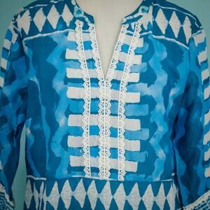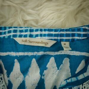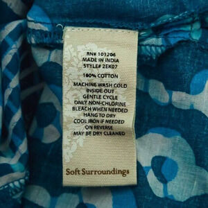 Soft Surroundings Size Medium M Lusi Blue Ikat Print 3/4 Sleeve Cotton Tunic Top