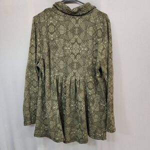 Soft Surroundings Size XL Green Long Sleeve Ruched Front Zip Up Jacket Geometric J15