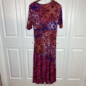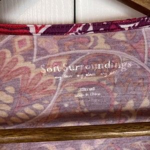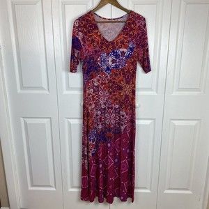 Soft Surroundings Size XS Midi Dress Short Sleeve A-Line Floral V-Neck Red Boho