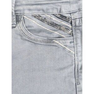Soft Surroundings Skinny Pants Embroidered Pockets Blue Grey Women's 14