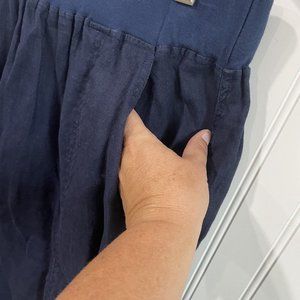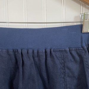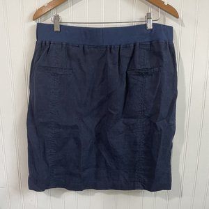Soft Surroundings Skirt Womens Large Navy Blue Linen Knee Length Pockets
