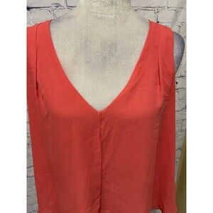 The Soft Surroundings Sleeveless Lila Top in Papaya Coral is a stylish and versatile blouse perfect for various occasions. Made of polyester chiffon, this blouse features a V-neckline, wide straps, and a pullover closure. The flyaway back adds a touch of elegance to the relaxed fit, making it a great choice for summer and spring seasons. With its colorful and feminine theme, this blouse is a must-have for any woman's wardrobe, whether for travel, casual outings, or business meetings. 23 inches pit to pit and 29 inches long. Smoke free home.