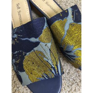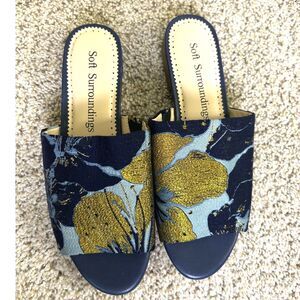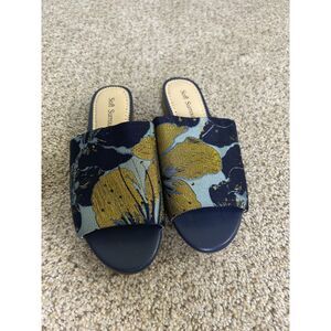 Soft Surroundings Slides Priya Size 8 Brocade Fabric Blue Gold summer preppy