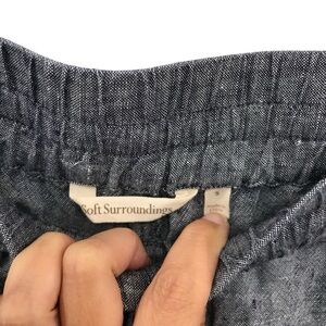 Soft Surroundings Small Kea Wide Leg Linen Pants Blue Button Detail