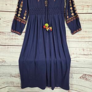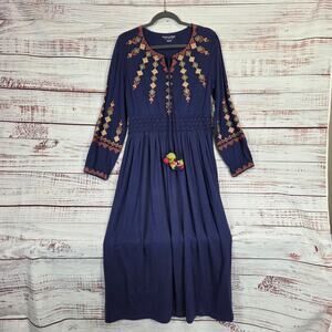 Soft Surroundings Socorro Maxi Dress MP Peasant Smocked Boho Embroidered