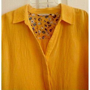 Soft Surroundings Sorano Tunic Top Melon Orange Gauze Roll Tab Buttons - Large