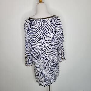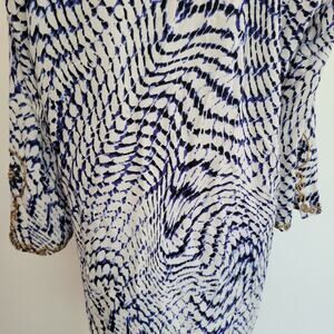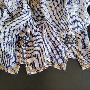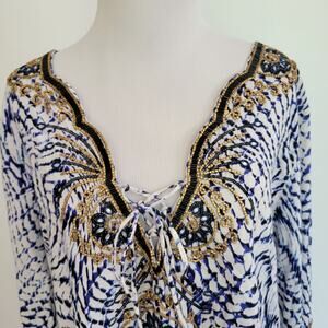Soft Surroundings South Beach Tunic Beaded Lace Up Blue White Women Large