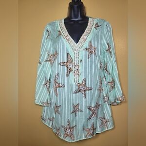 Soft Surroundings Stella Marina Top Metallic Thread Sea Shells Starfish Beaded s