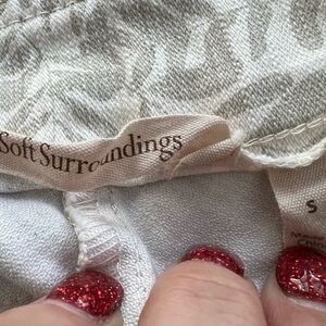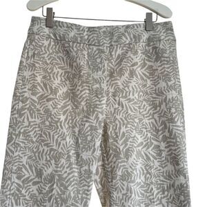 Soft Surroundings Stretchy Jeggings Style Pants White w/ Gray Leaf Print Small