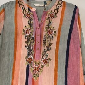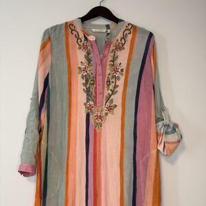 Soft Surroundings Striped Aruba Caftan Dress Women's Medium Embroidered Flowy