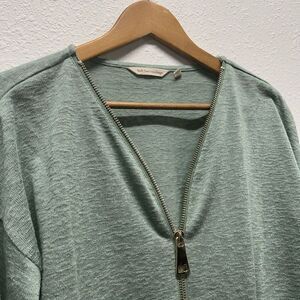 Soft Surroundings Style #2CU64 Green Valentina Zip Up Sweater Knit Top Size M