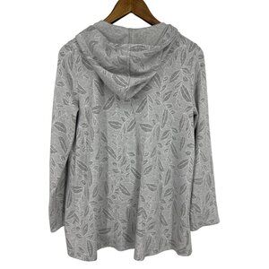 Soft Surroundings' Sunday in Estrade Hoodie Jacket is a cozy full-zip knit piece in gray, adorned with a leaf design. Perfect for laid-back weekends, Size S.