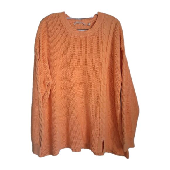 Soft Surroundings Sweater 3X Chunky Cable Knit Peach Orange Cotton Slit.