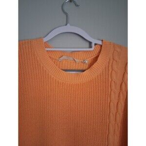 Soft Surroundings Sweater 3X Chunky Cable Knit Peach Orange Cotton Slit