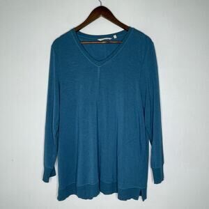 Soft Surroundings Sweater Blue Petite Large Long Sleeve V-Neck Turquoise