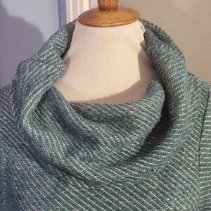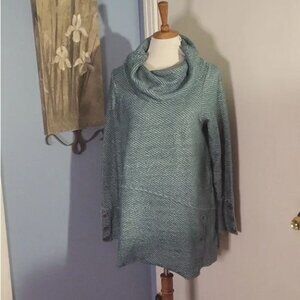 Soft Surroundings Sweater Medium Turquoise Blue Cowl Buttons