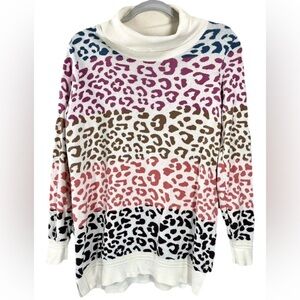 Soft Surroundings Sweater Small Leone Rainbow Leopard Print High Neck Cozy Knit