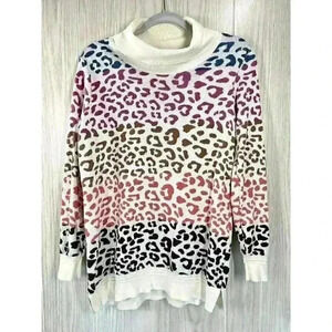 Soft Surroundings Sz Small Leone Rainbow Leopard Print Turtleneck Sweater Top Cozy. Gently used with no flaws found. Measurements in photos. Fast shipping!