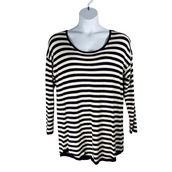 Soft Surroundings Sweater Tunic Womens XL Navy Stripe Knit Back Zip Margulies