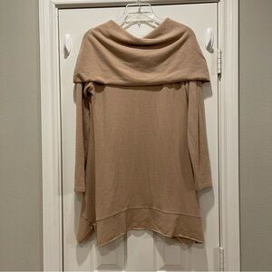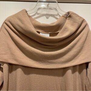 Soft Surroundings Sweater Women's Medium Cowl Neck Tan Tunic Off Shoulder Boho