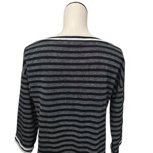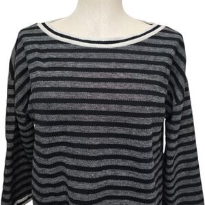 Soft Surroundings Sweater Women’s Medium Knit Striped Top Black Gray 3/4 Sleeve