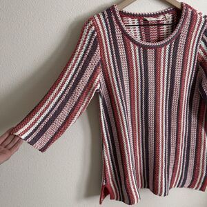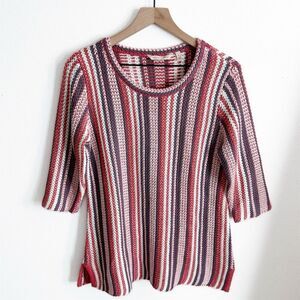 Soft Surroundings Sweater Womens Medium Red Blue Striped Knit Breathable Comfort