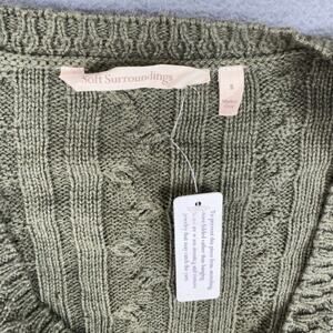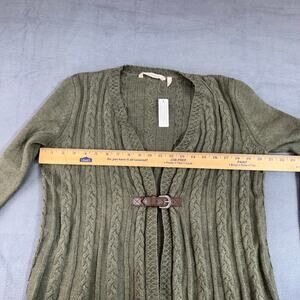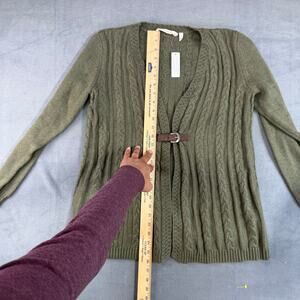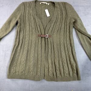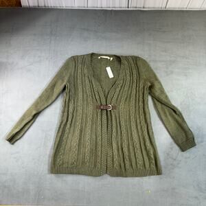 Soft Surroundings Sweater Womens Wren Cable Knit Cardigan Olive Green Buckle S