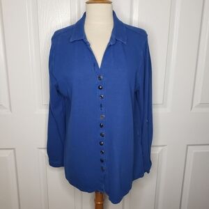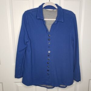 Soft Surroundings Sydney Shirt Tunic Top XL Buttondown Waffle Knit Mixed Media Buttons