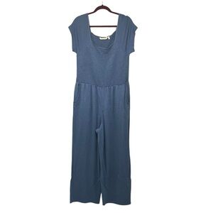 Soft Surroundings Sylvie Smocked Blue Jersey Knit Wide Leg Jumpsuit Womens Large