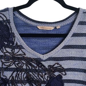 Soft Surroundings Syrah Two tone Blue stripe Soutache Embroidery Bronze Metallic thread Sweater